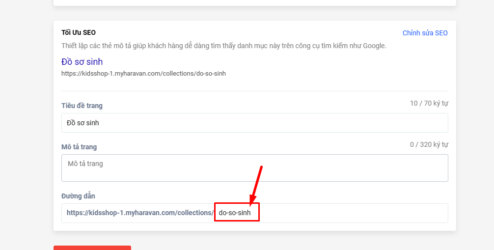 - Trong đó tên đường dẫn nhóm sản phẩm lấy như ảnh: