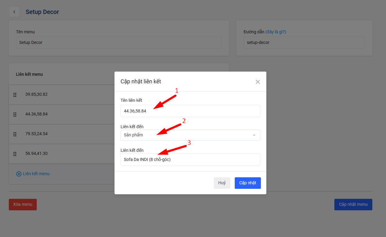 - (2) Liên kết đến bạn chọn "Sản phẩm"
