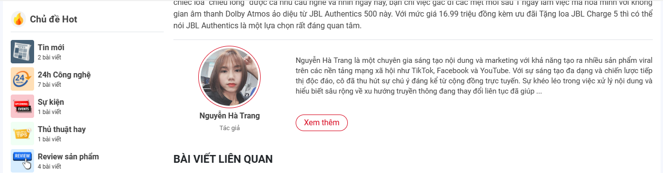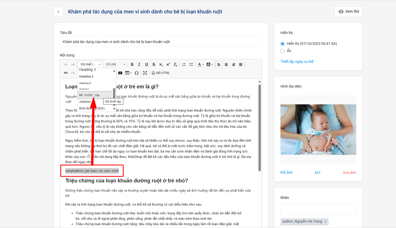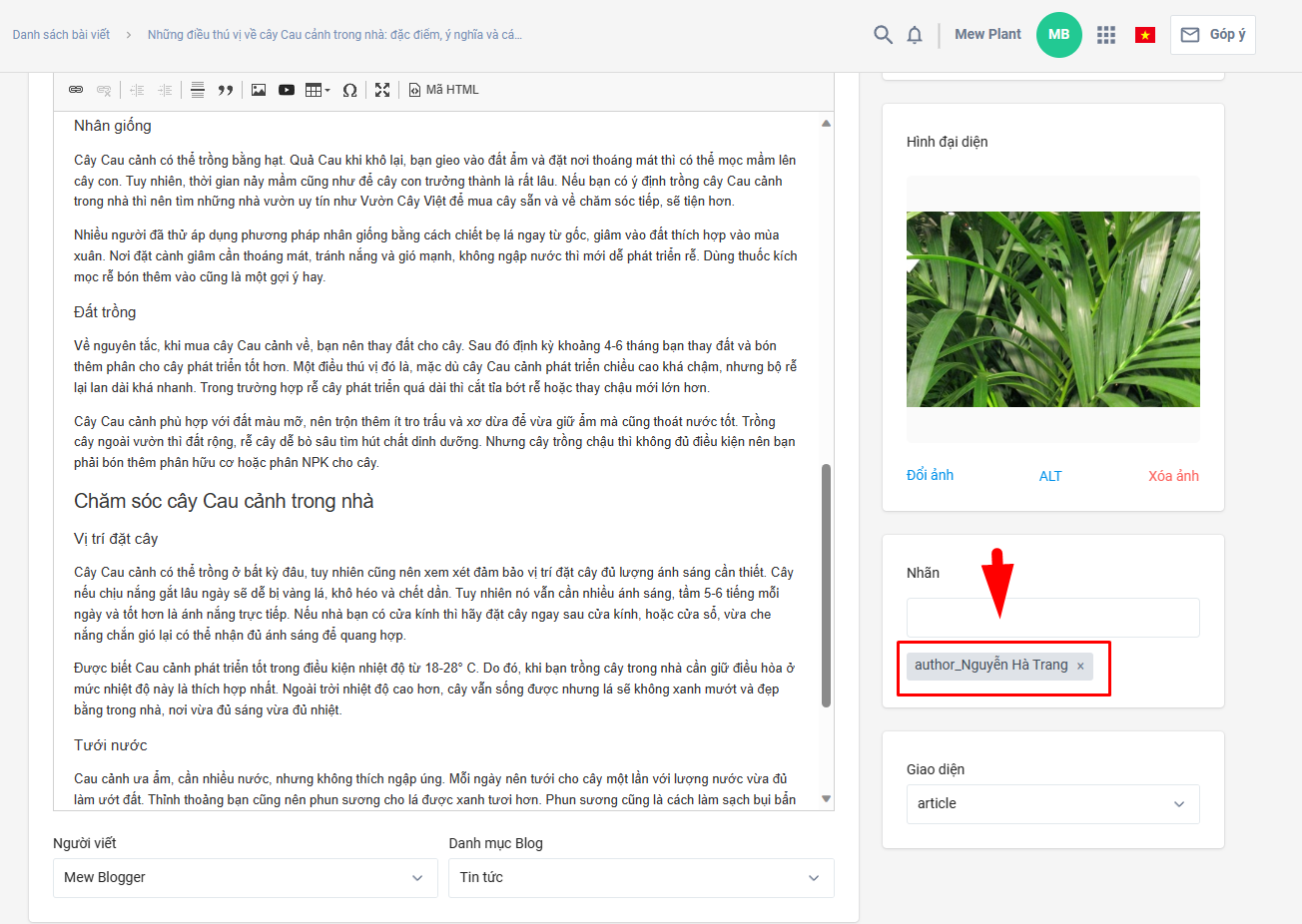 - Trong bài viết cụ thể gắn tag theo cú pháp: author_Tên bài viết tác giá vừa tạo. Ví dụ: author_nguyễn hà trang