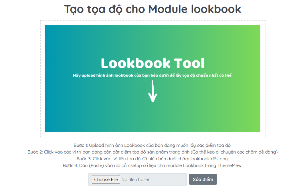 Click Choose File để up ảnh lookbook của bạn muốn lấy các tọa độ sản phẩm.