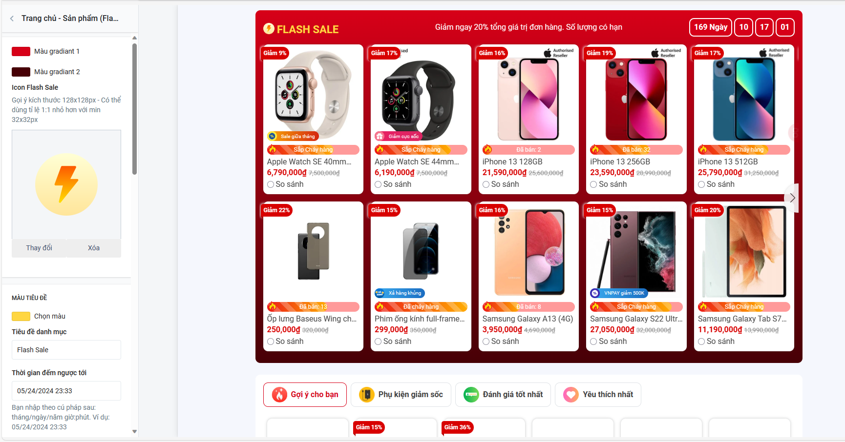 - Hiển thị các sản phẩm đang trong chương trình flashsale