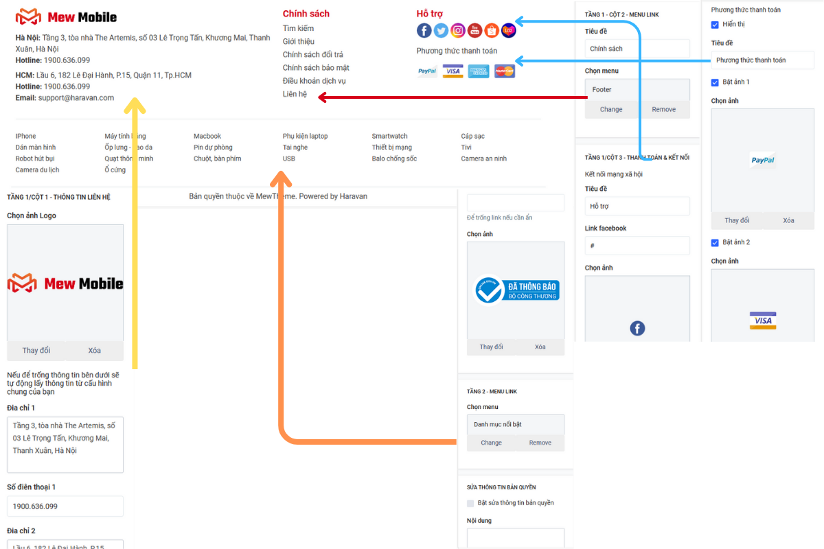 - Quản lý và thiết lập các mục liên quan đến phần chân trang