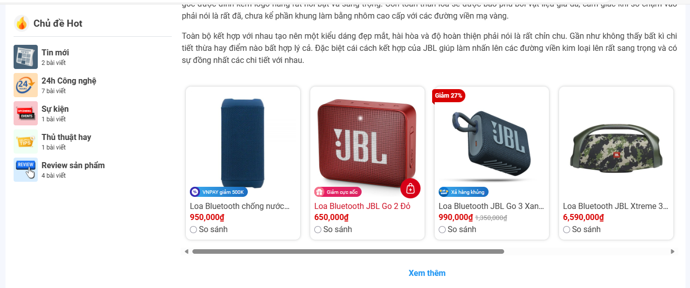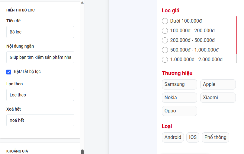 - Thiết lập bộ lọc: Giá, loại, thương hiệu