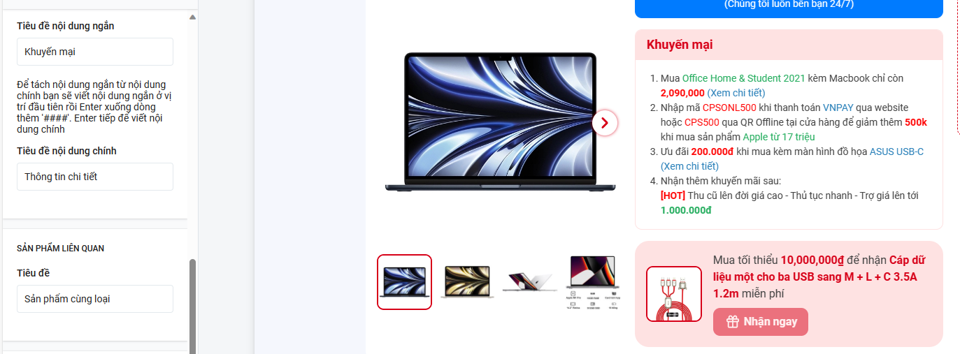 Nội dung khuyến mại bạn hãy viết ở trên cùng của nội dung mô tả, sau đó enter xuống dòng kết thúc bằng cú pháp "####" Enter tiếp để nhập nội dung chính