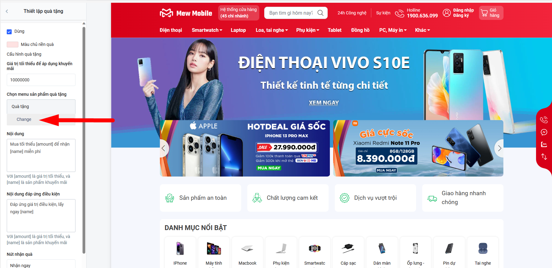 - Cho phép thiết lập nhiều mốc giá trị tướng ứng với nhiều mốc sản phẩm quà tặng khác nhau.