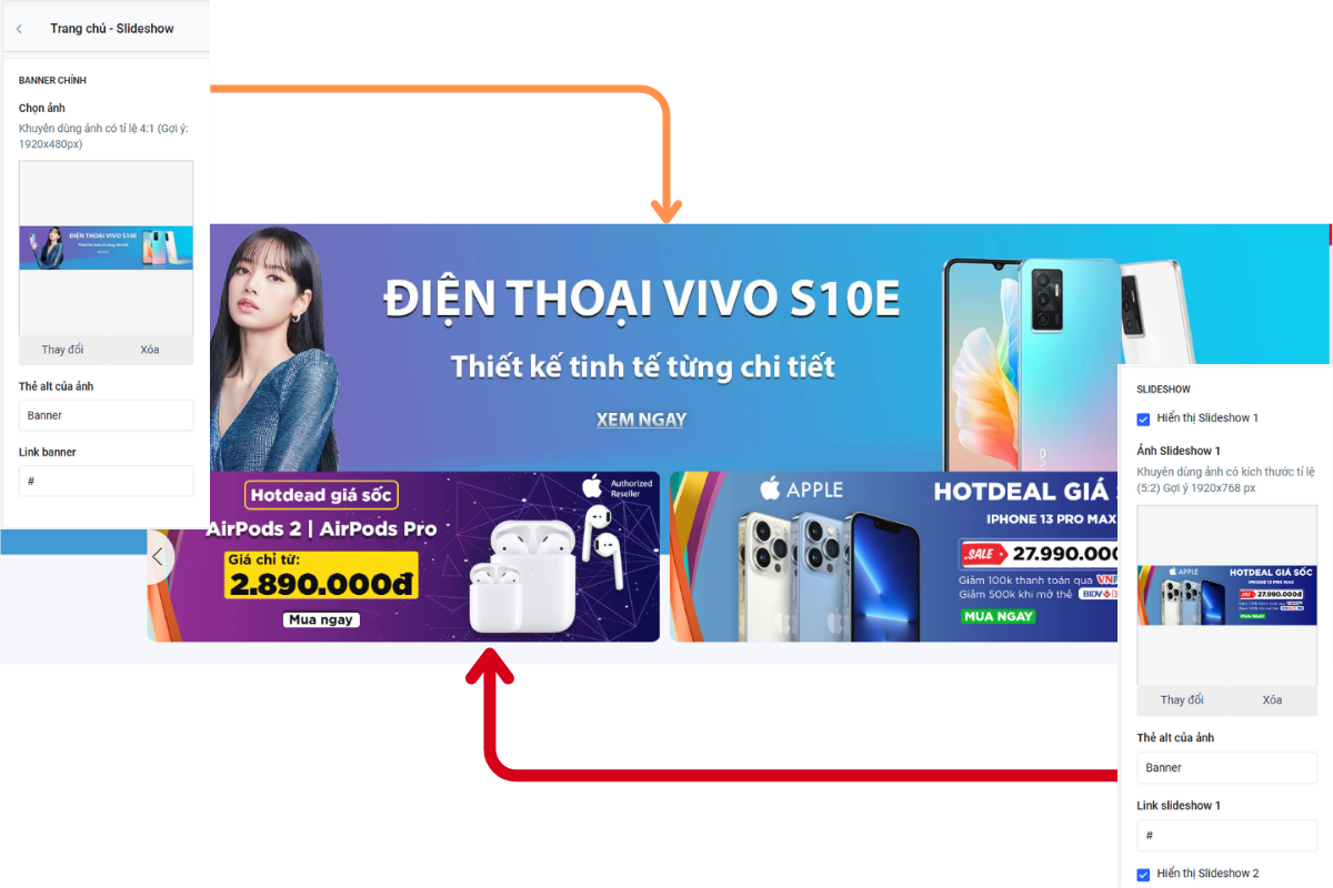 - Thay đổi hình ảnh, liên kết và alt của banner chính