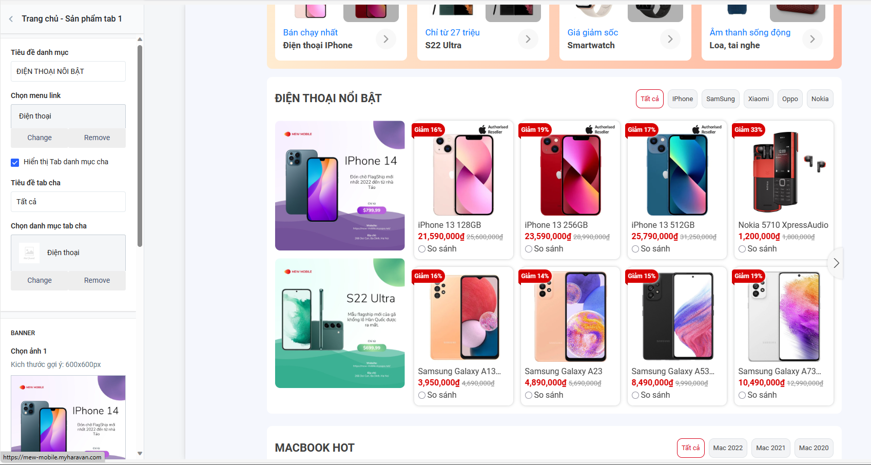 - Hiển thị các danh mục hot theo lựa chọn của cửa hàng, hiển thị tối đa 04 danh mục sản phẩm