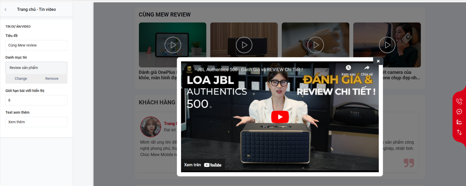 - Hiện tại theme chỉ hỗ trợ cho video youtube, chưa hỗ trợ video từ các nền tảng khác