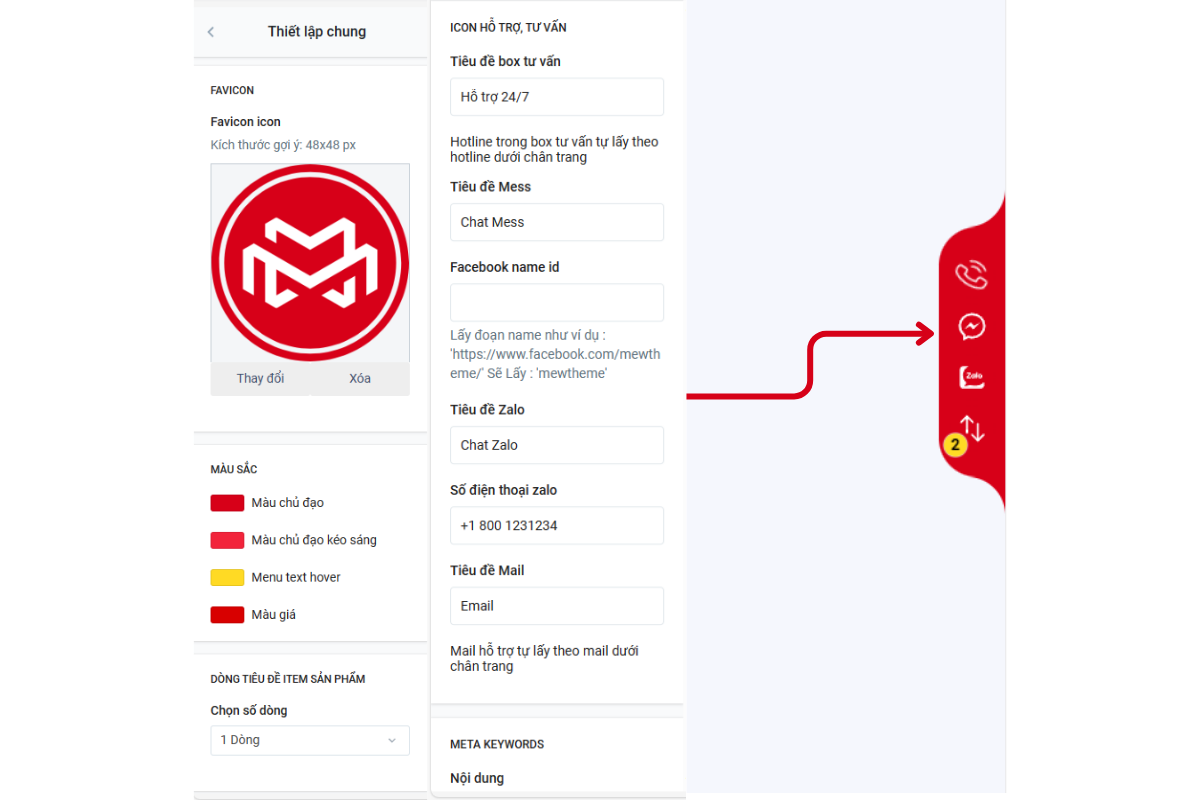 - Có các thiết lập icon tương ứng với mỗi menu danh mục (Tối đa 20 icon)