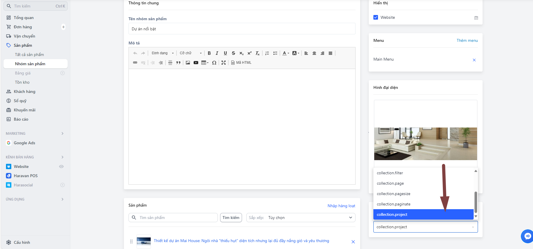 - Khung collection.project (Nhóm sản phẩm dự án)