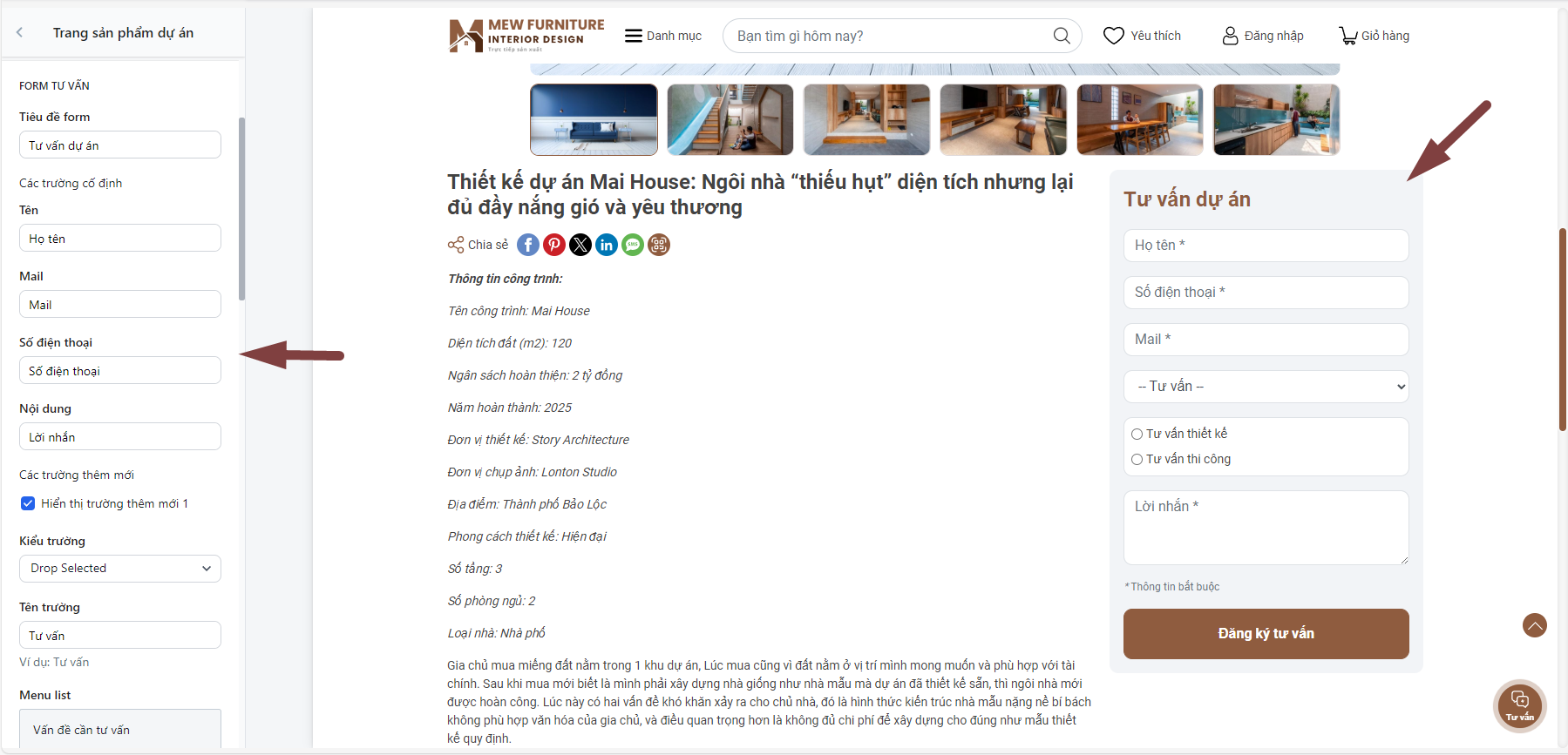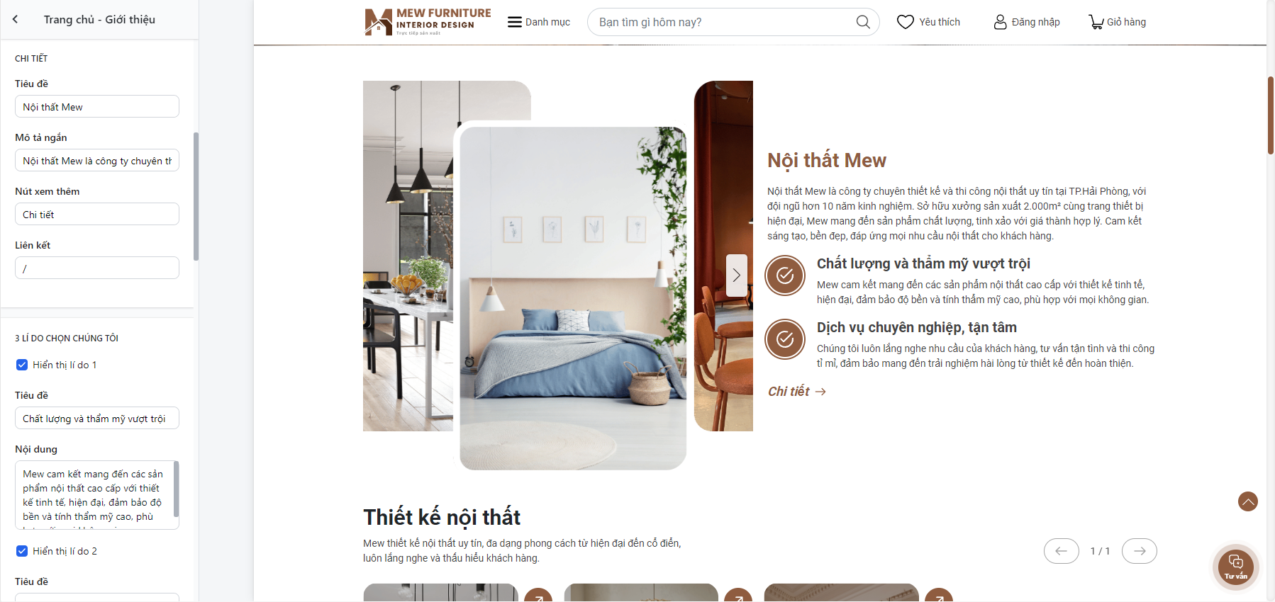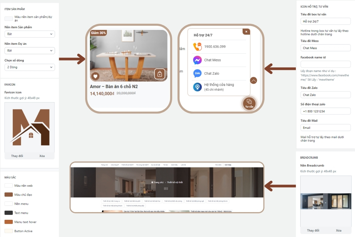 - Thiết lập dễ dàng chi tiết theo các mục đã có trong quản trị: