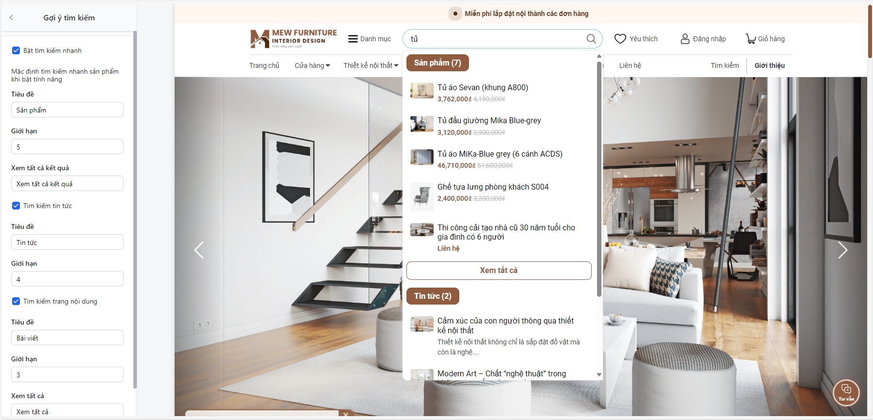 - Thay đổi số lượng kết quả hiển thị, số kết quả tìm kiếm phù hợp với từ khoá, vì lý do kỹ thuật cũng như tránh ảnh hưởng đến quá trình trải nghiệm mua hàng của quý khách, chúng tôi đề nghị không nên hiển thị quá nhiều số lượng kết quả tìm kiếm