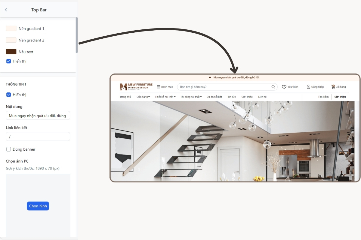 - Thiết lập dùng nội dung hoặc dùng ảnh banner cho topbar