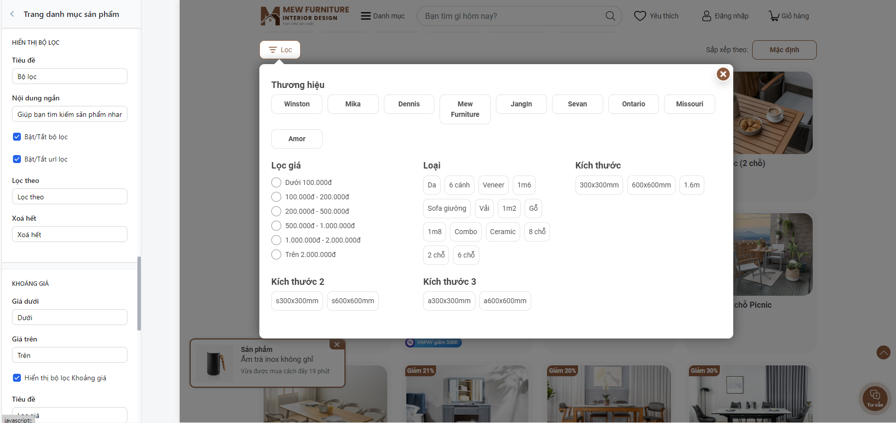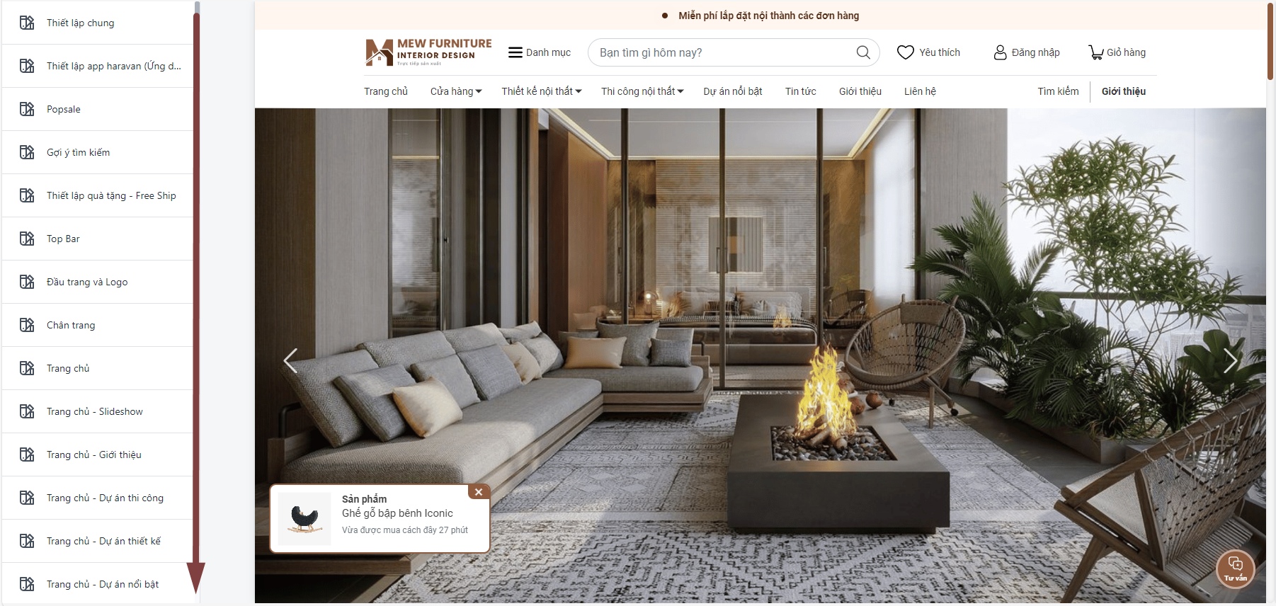- Quản lý các nội dung thông báo của giỏ hàng/ thôn báo tồn kho của sản phẩm, sắp xếp sản phẩm, xem thêm thu gọn