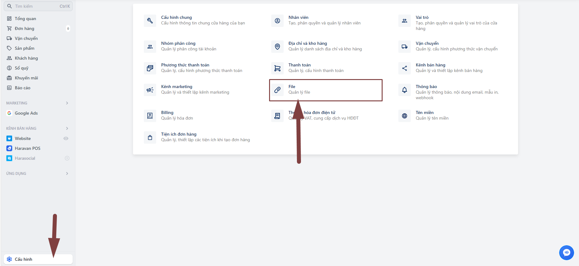 - Quản lý và thiết lập các mục liên quan đến phần chân trang