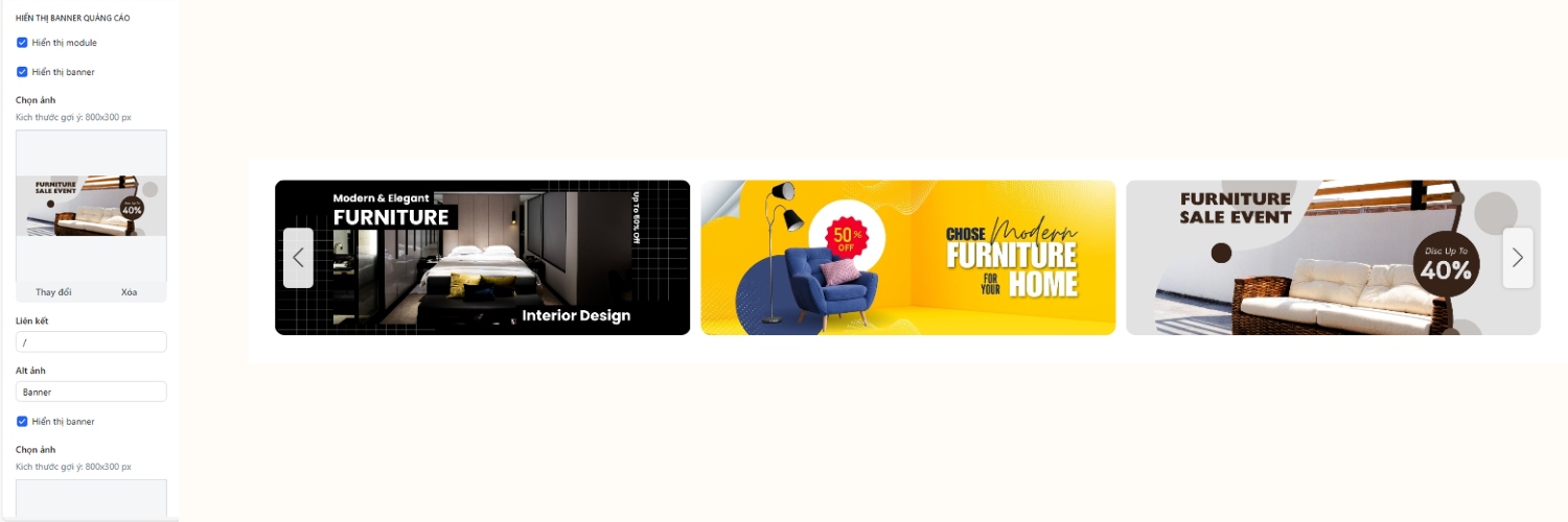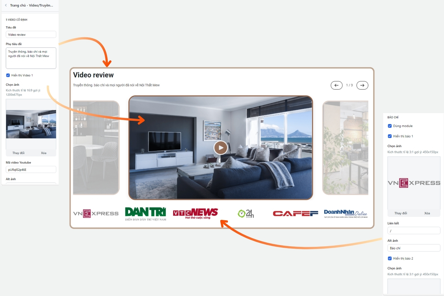 - Có thể bật dùng video thay cho banner (Video sẽ up file mp4 trong quản lý file để lấy link)