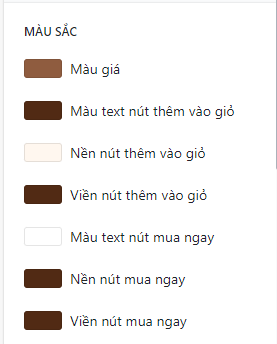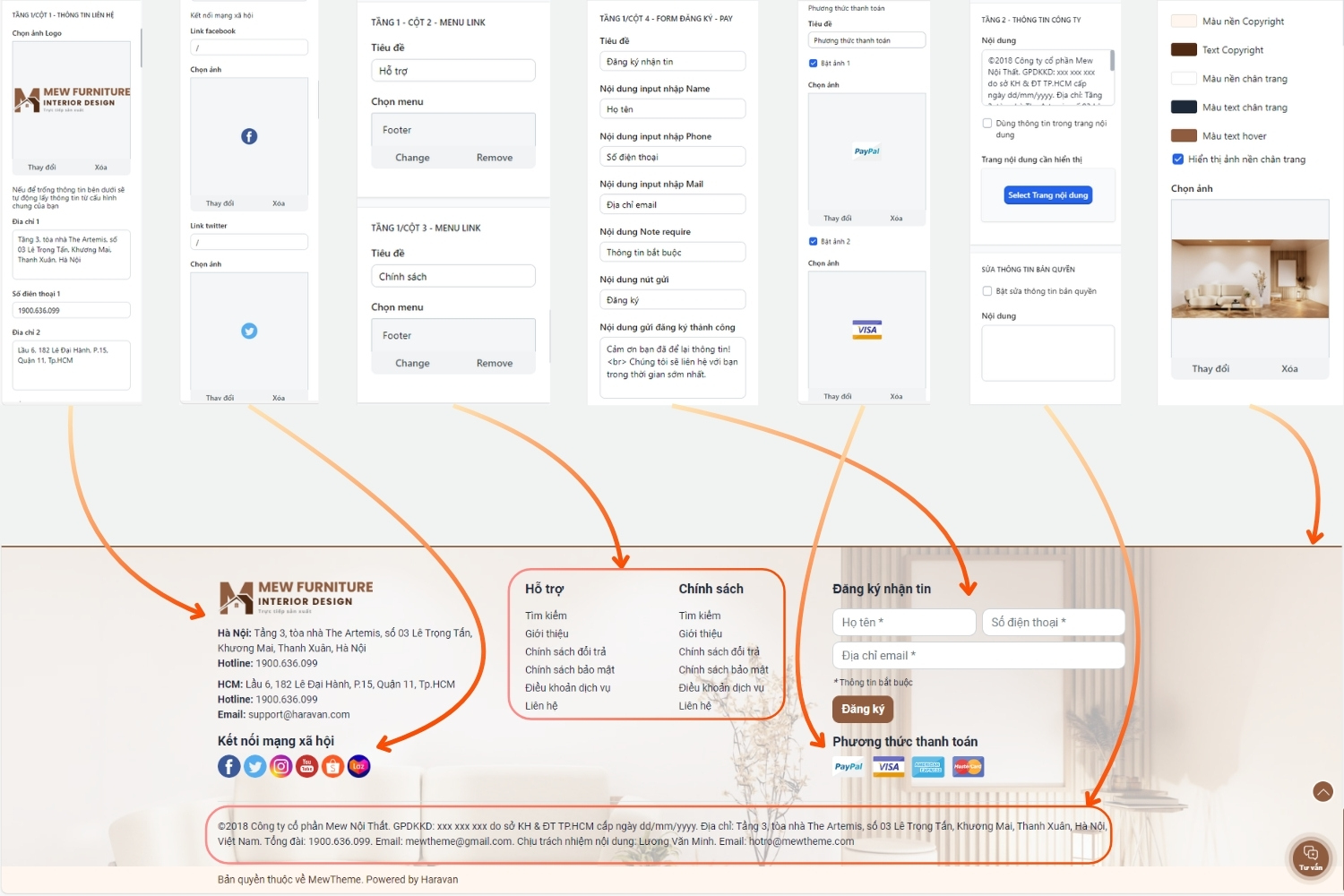 - Lựa chọn màu nền, text chân trang, text hover chân trang