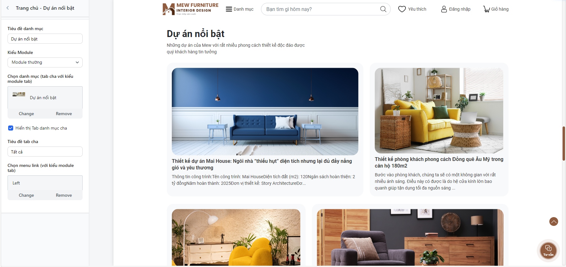 - Quản lý và thiết lập hiển thị, thay đổi vị trí của các module trên trang chủ