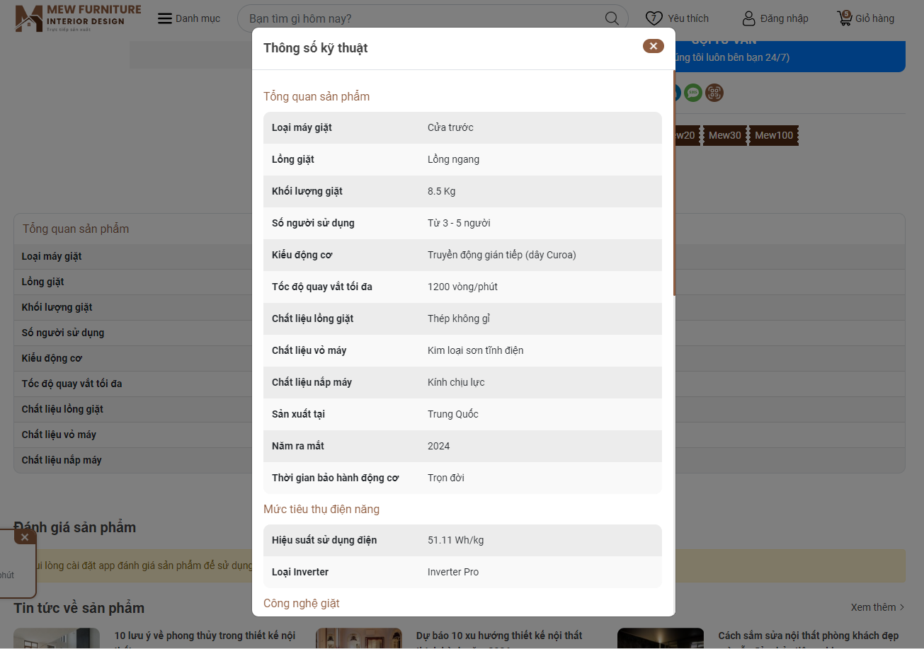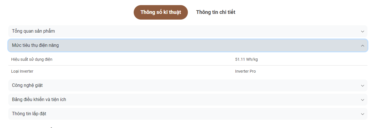 Từ khóa trong heading 6 nhập theo từ khóa "Tiêu đề tab thông số"