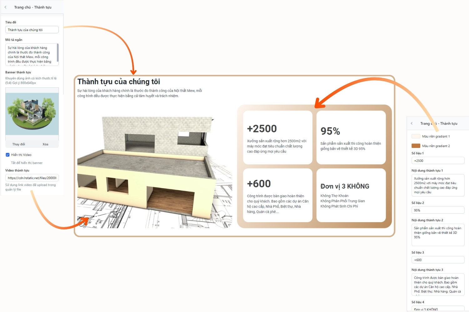 - Thay đổi màu sắc, số liệu, nội dung thành tựu