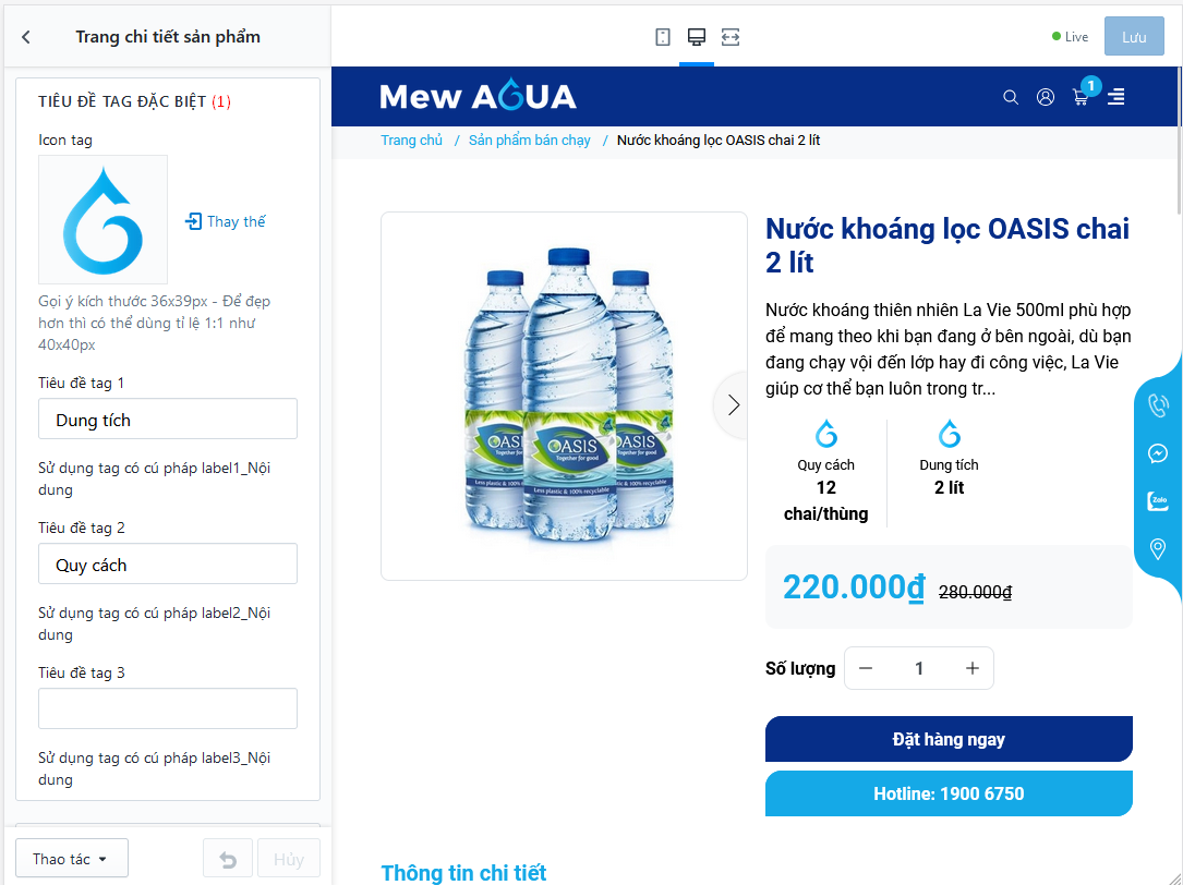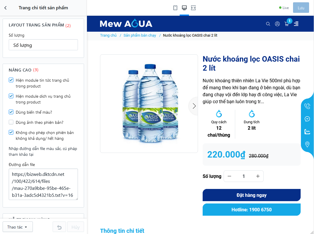 - (2) Thiết lập text số lượng tại trang chi tiết sản phẩm
