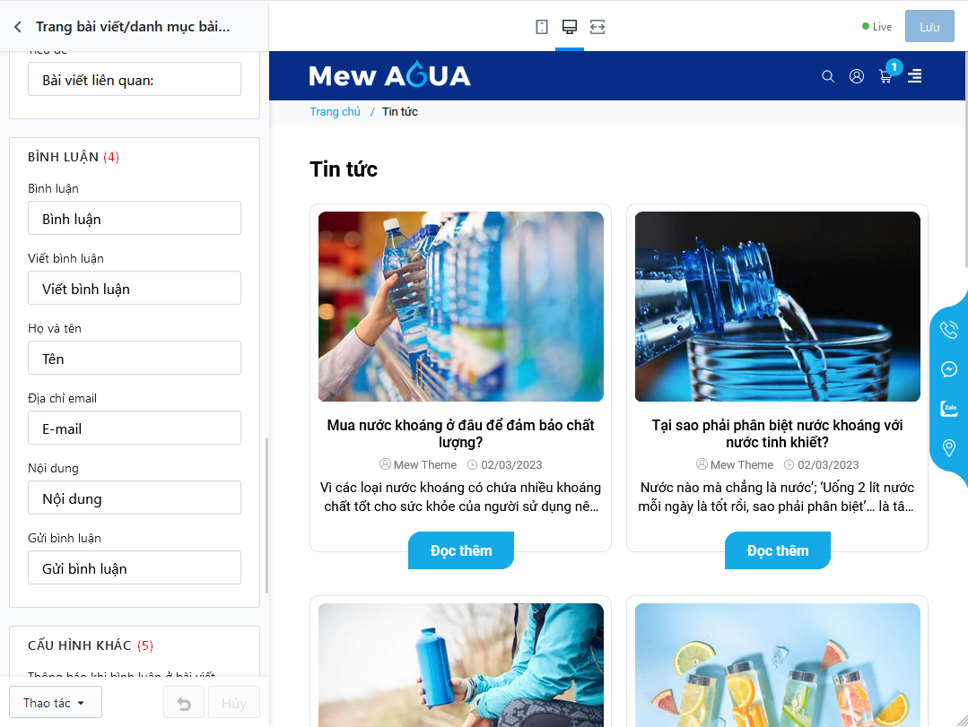 - (4) (5) Thiết lập tuỳ chỉnh cho một số tiêu đề của bình luận và các mục liên quan