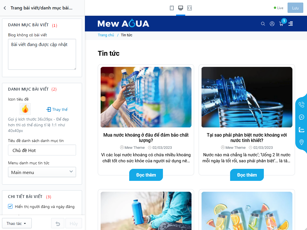 - (3) Thiết lập một số tính năng hiển thị ở chi tiết tin tức
