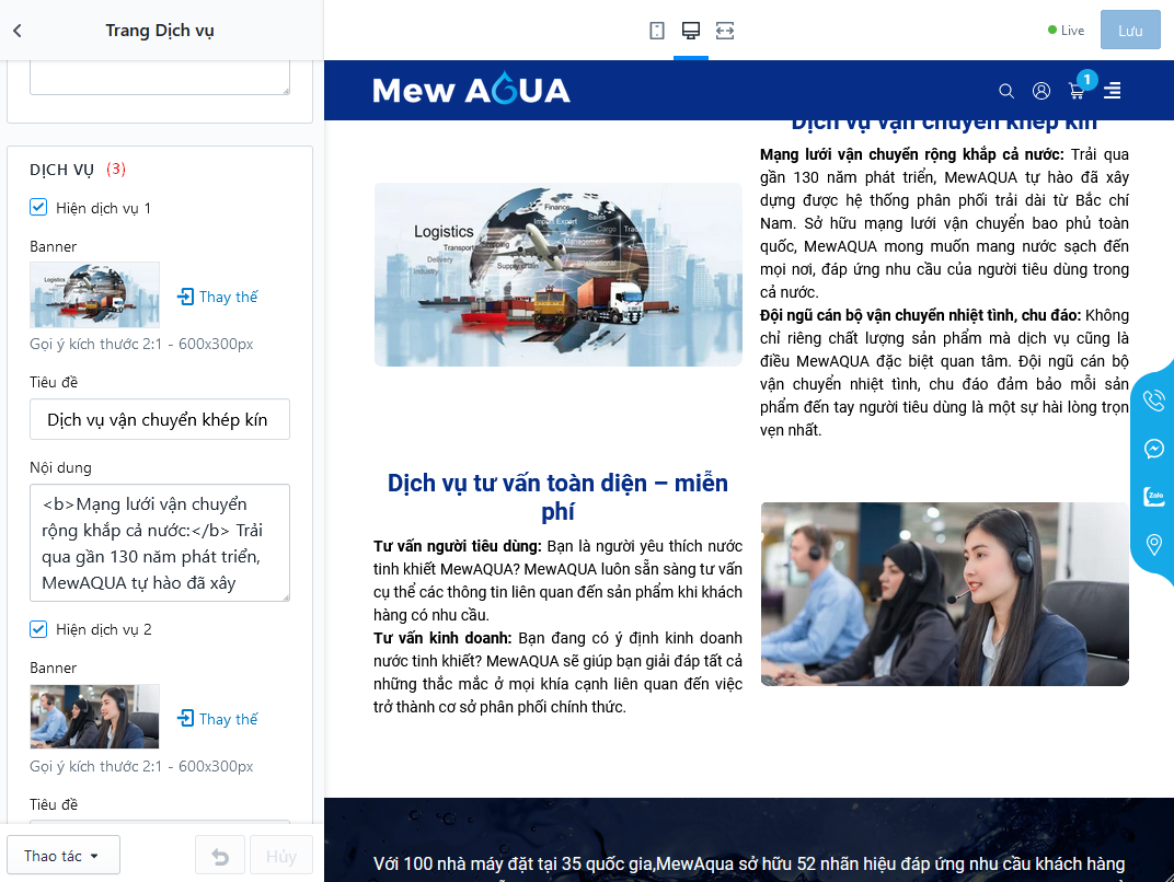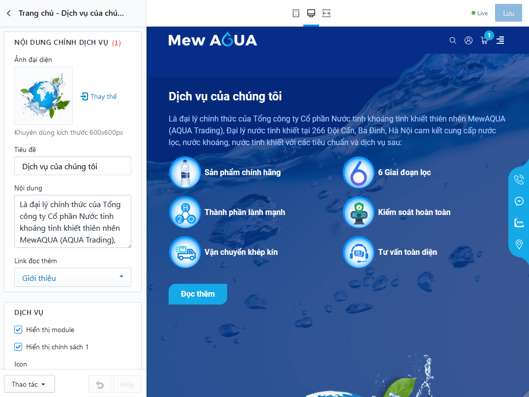 - (3) Thiết lập khối nội dung dịch vụ, mỗi dịch vụ có thết lập lựa chọn hình ảnh, tiêu đề và nội dung