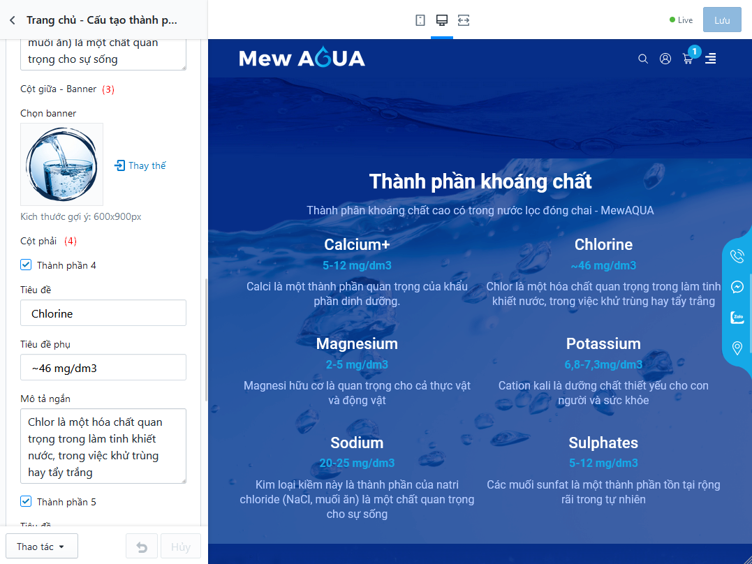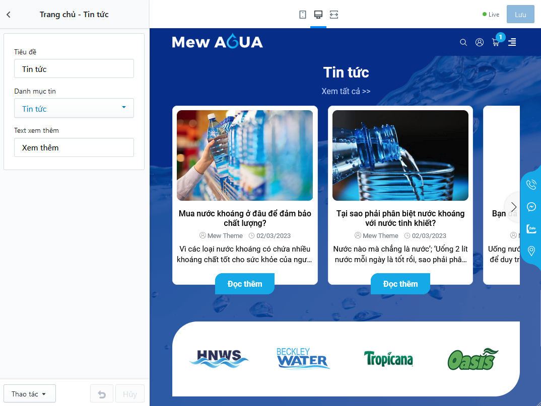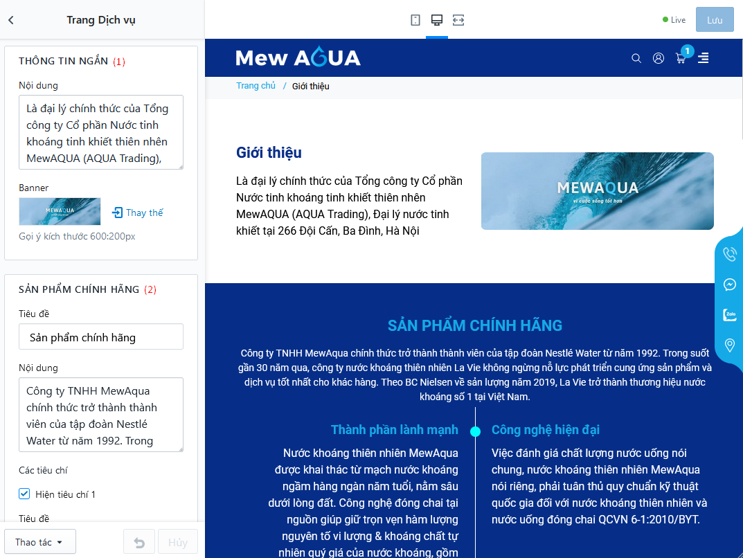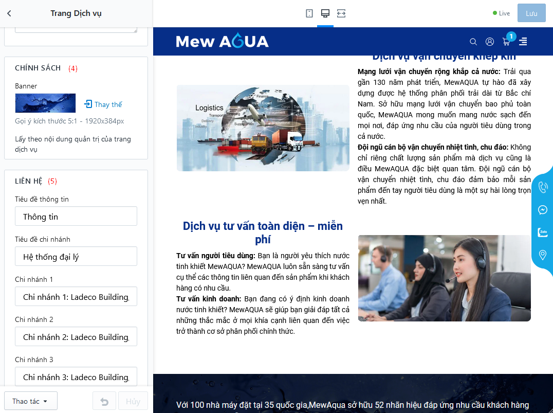 Quản lý và thiết lập các mục liên quan đến phần đầu trang/ logo cũng như quản lý tuỳ chọn menu của bản PC và Mobile
