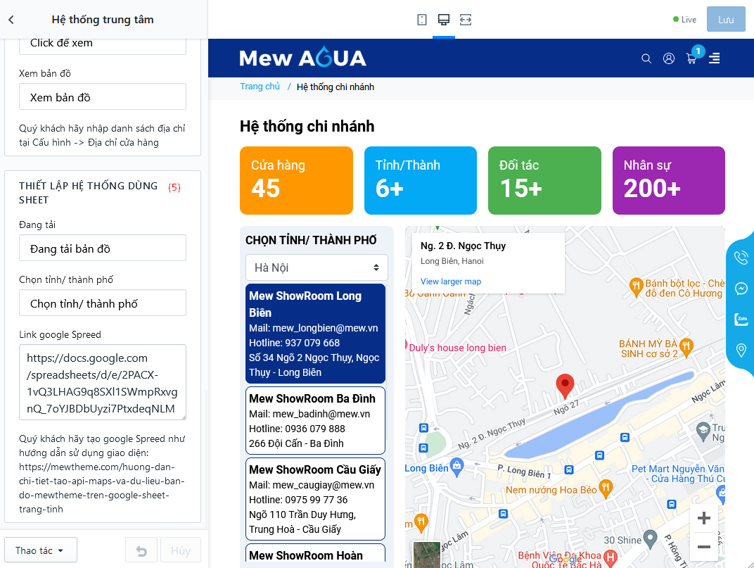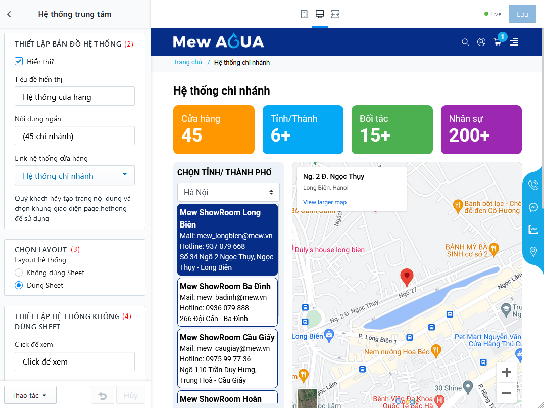 - Ngoài ra layout này còn hiển thị hệ thống cửa hàng và bản đồ chỉ đường, với 2 tuỳ chọn: