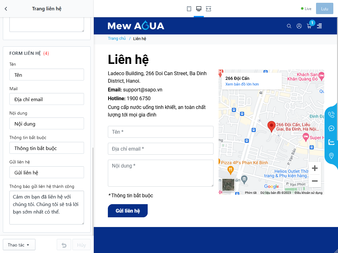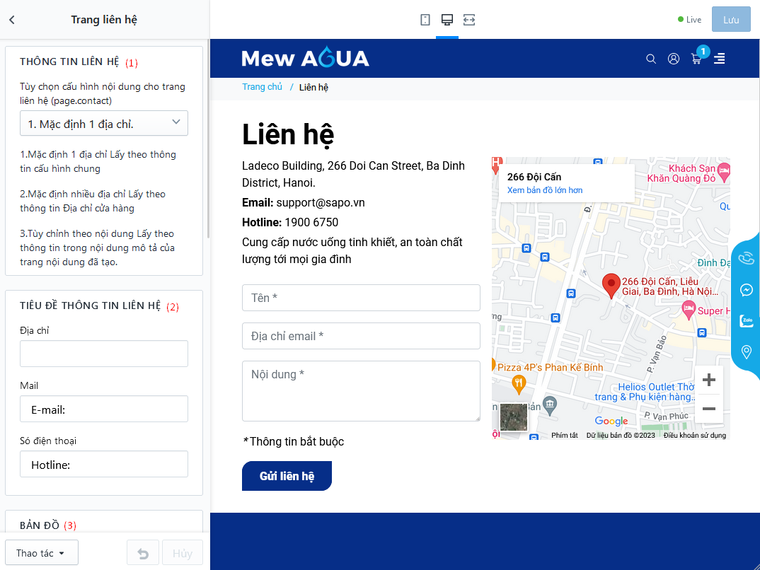 - (2) Thiết lập thông tin liên hệ: địa chỉ, email, số điện thoại liên hệ và thông tin mô tả thêm
