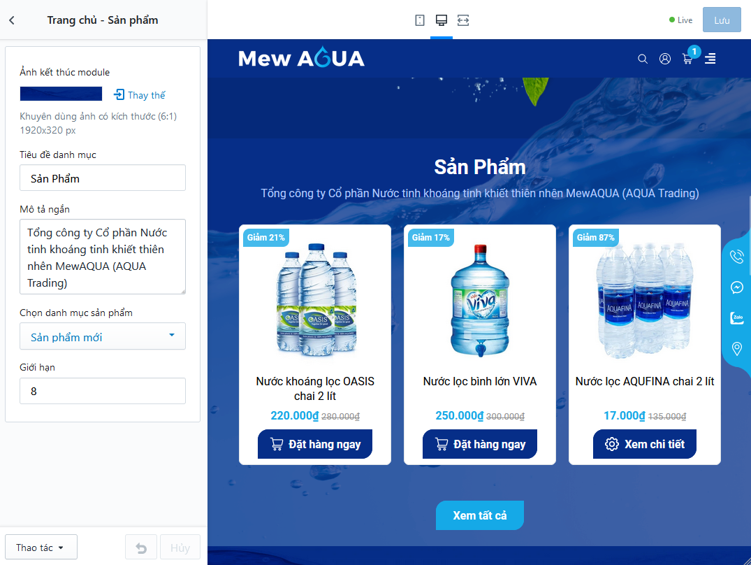 - Thiết lập tiêu đề danh mục, mô tả ngắn, chọn danh mục sản phẩm và giới hạn hiển thị