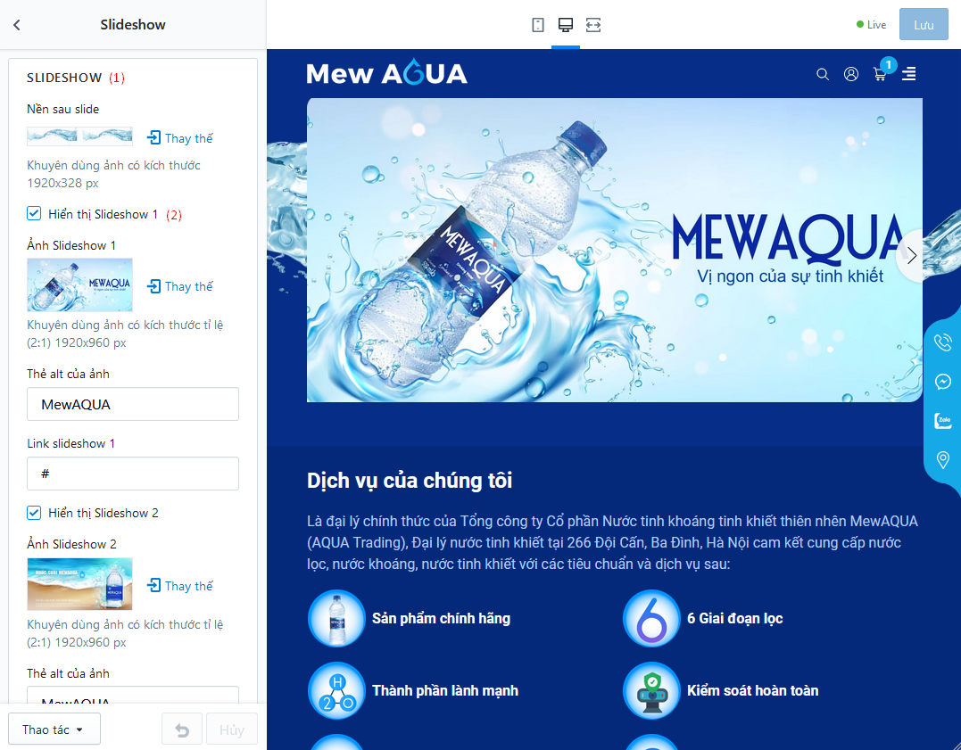 - (2) Bật/tắt hiển thị slide, liên kết và alt của từng slide, hiển thị tối đa 05 slide
