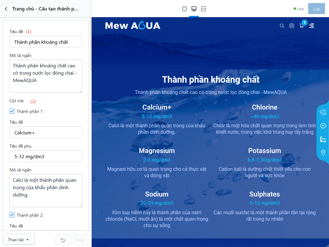- Cho phép thay đổi nội dung của các mục tiêu đề trang (title) và tiêu đề của breadcrumb, phù hợp với KH muốn tự thay đổi sang ngôn ngữ khác