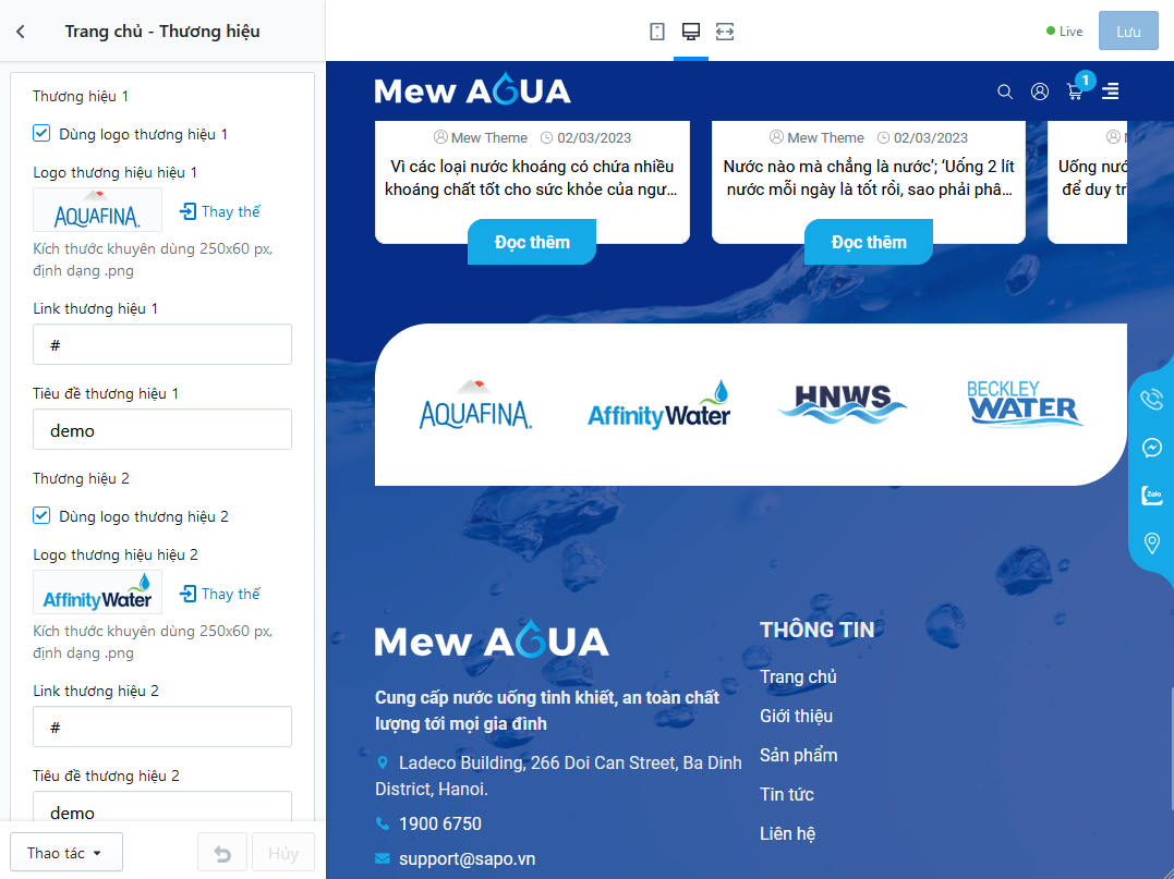 - Thiết lập hiển thị bật/ tắt từng thương hiệu cũng như tuỳ chỉnh hình ảnh, tên thương hiệu và liên kết tương ứng