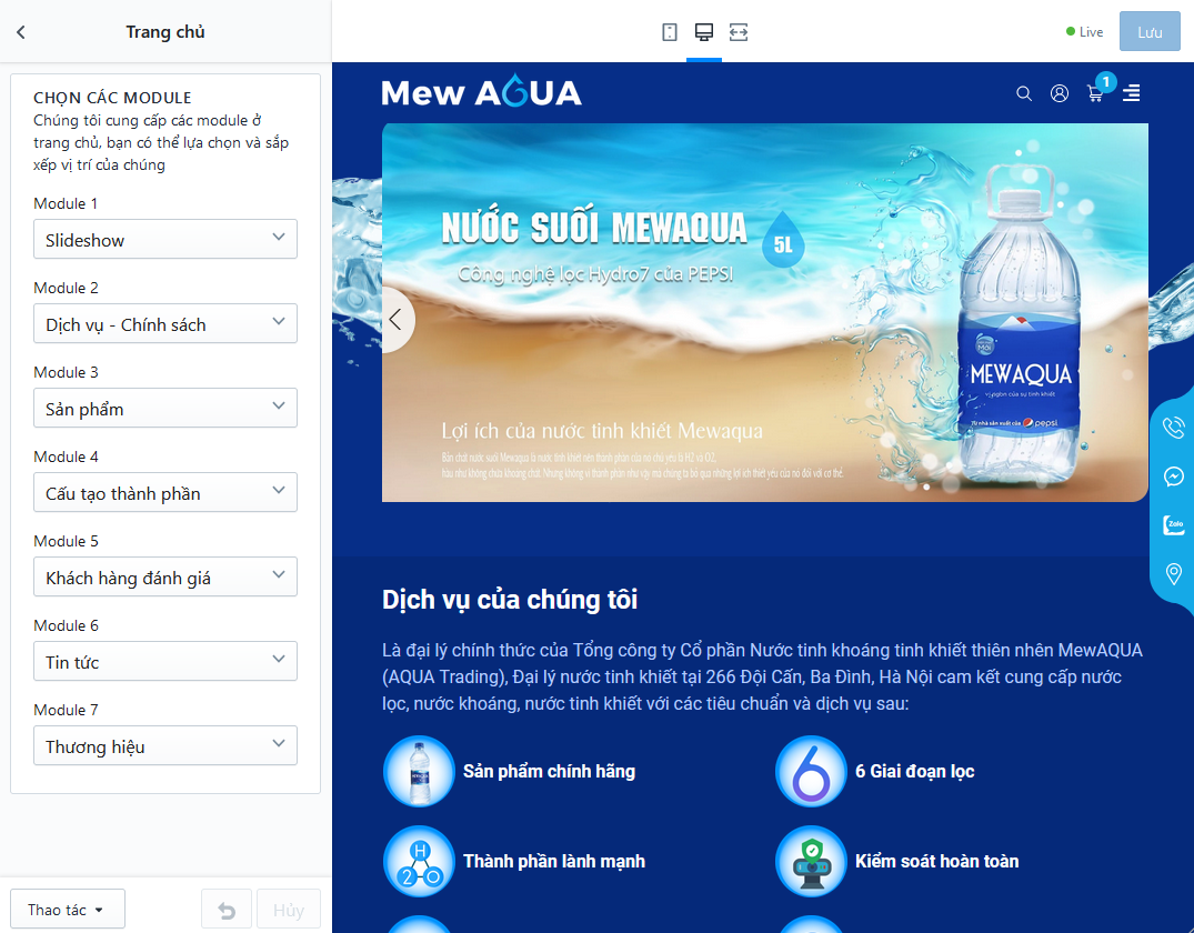 - Quản lý và thiết lập hiển thị, thay đổi vị trí của các module trên trang chủ