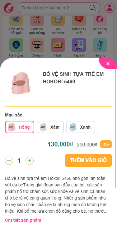 - Kết hợp xem nhanh tại nút hành động của sản phẩm nhiều thuộc tính tạo trải nghiệm tốt khi mua hàng.