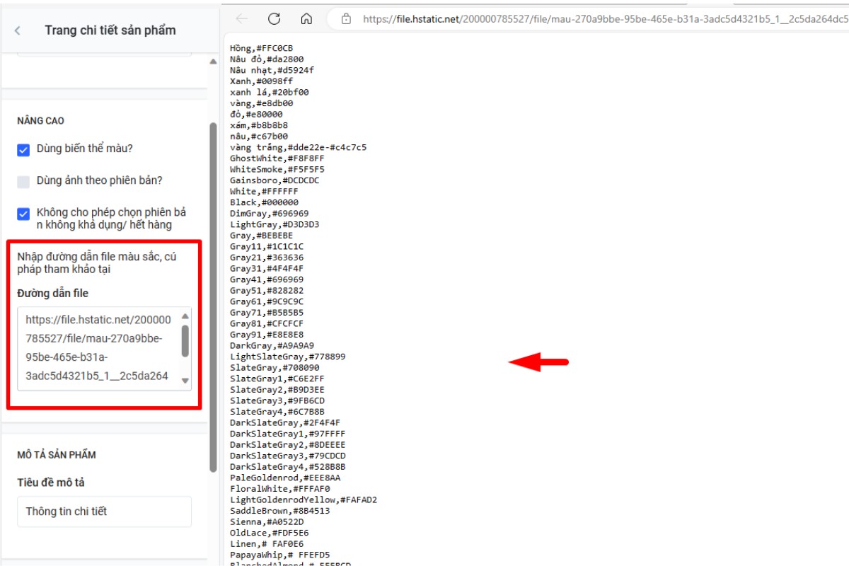 - Mewtheme phát triển biến thể màu sử dụng File TXT giúp chủ shop có thể thiết lập đc gần như không giới hạn màu sắc, cũng như có thể thiết lập tên màu riêng biệt theo mỗi mã màu riêng phù hợp riêng cho từng ngành.