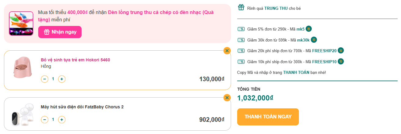 Với việc thiết lập được chương trình tặng 1 trong nhiều sản phẩm khuyến mại theo nhiều mốc giá trị đơn hàng.