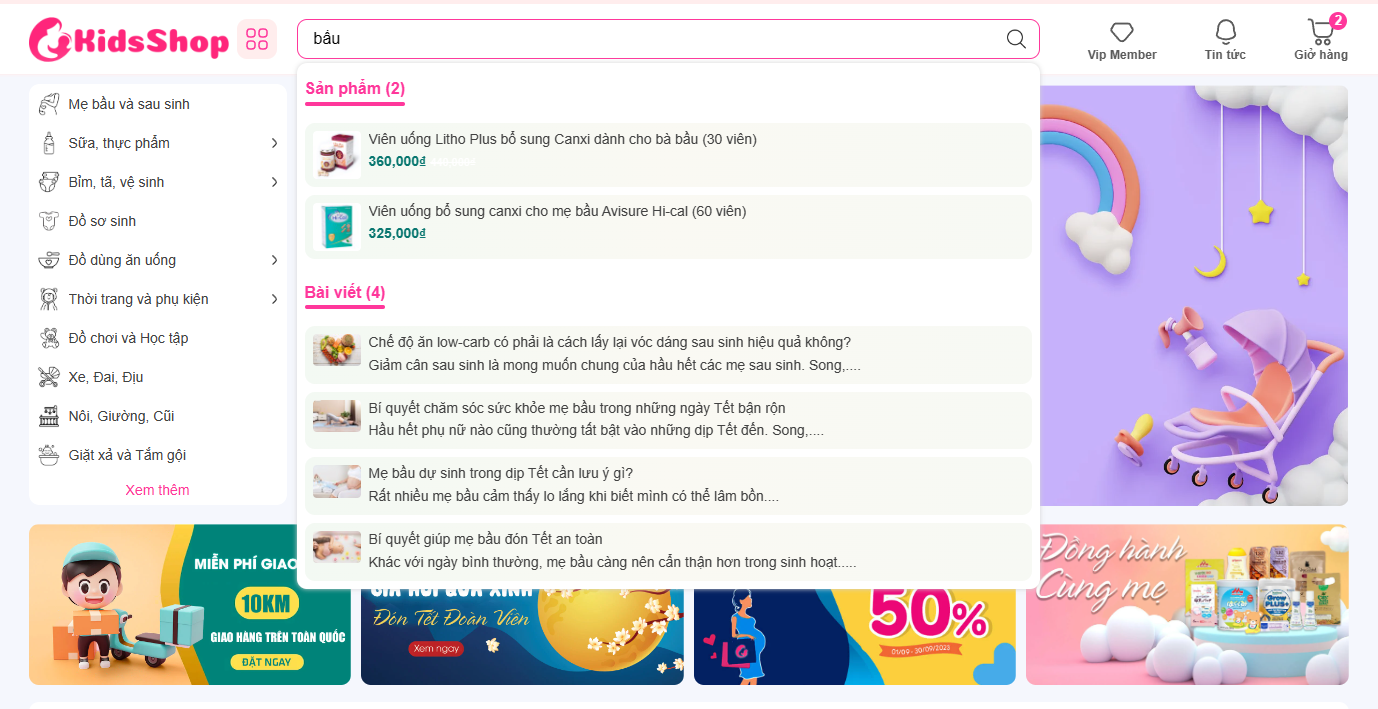 - Tính năng Quick search - Gợi ý tìm kiếm sản phẩm - tin tức - trang nội dung