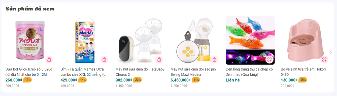 - Giao diện lưu lại các sản phẩm KH đã xem trước đó để tiện cho việc trải nghiệm tham khảo các sản phẩm khác nhau trên Website