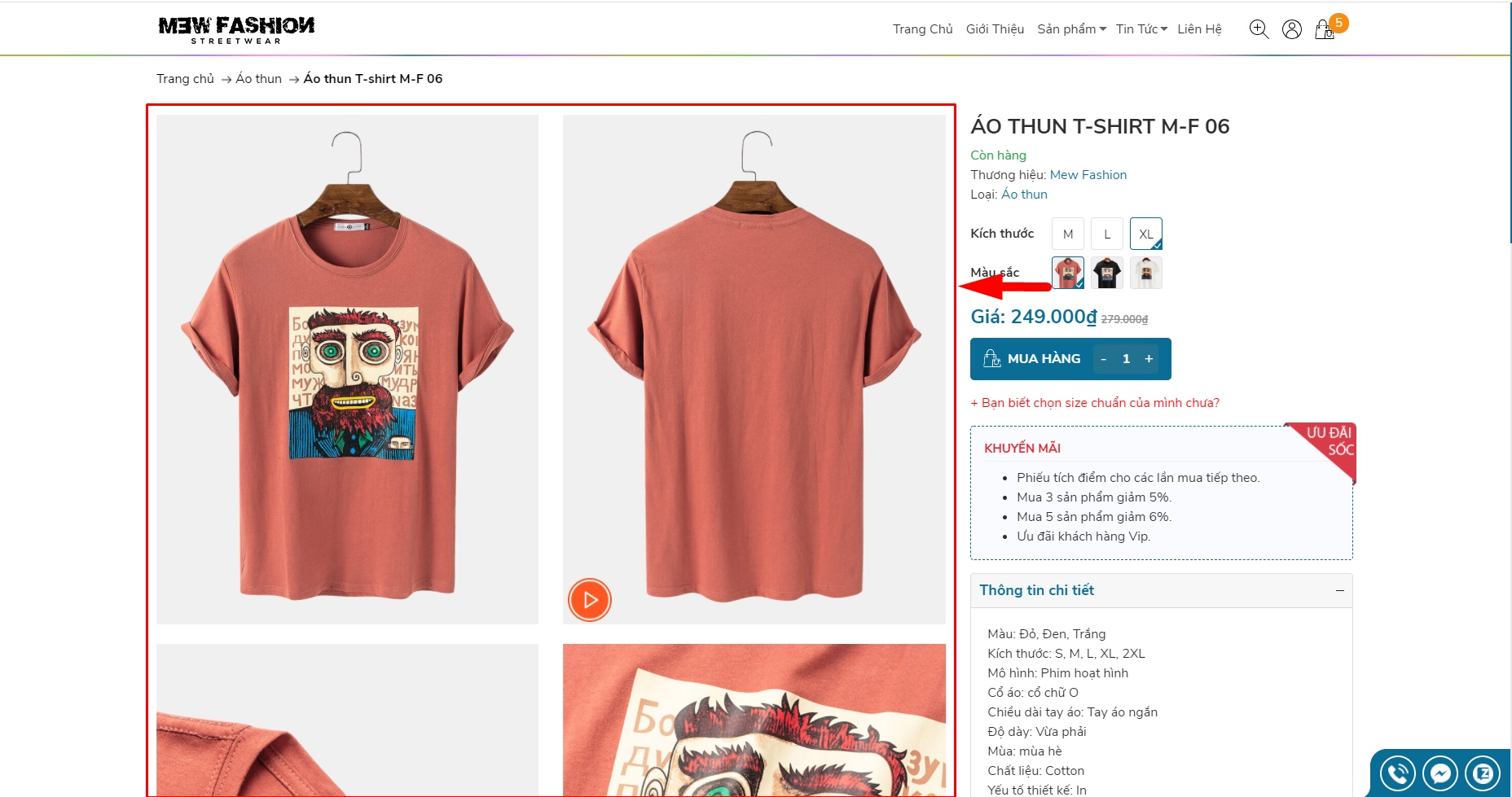 - Tính năng List ảnh sản phẩm theo thuộc tính màu sắc.