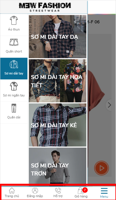 MewFashion đc thiết kế thanh Bottom bar trên mobile phù hợp với thói quen lướt, trượt với 1 ngón tay.