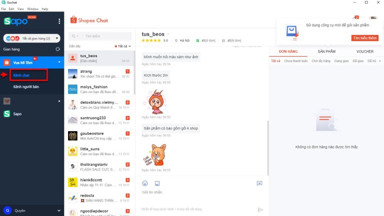 Ngay sau khi đăng nhập thành công, bạn đã có thể làm chủ kênh chat và kênh người bán ngay tại một màn hình duy nhất rồi.