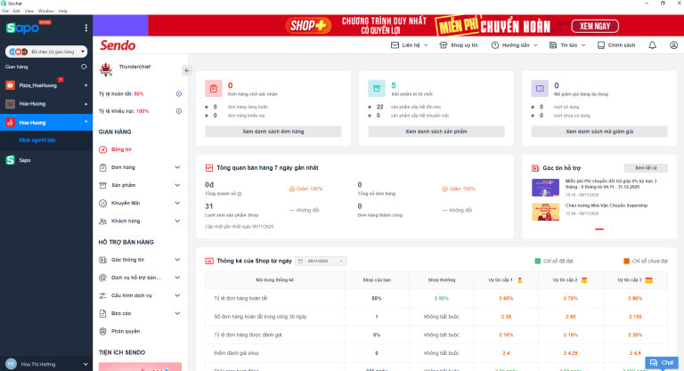 - Bước 3: Đăng nhập gian hàng để quản lý kênh người bán và kênh chat